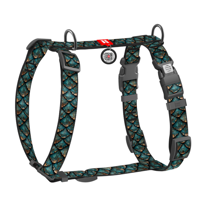 Шлея для собак анатомічна H-подібна WAUDOG Nylon з QR адресником, малюнок "Луска", пластиковий фастекс, S, Ш 15 мм, A 30-45 см, B 36-45 см