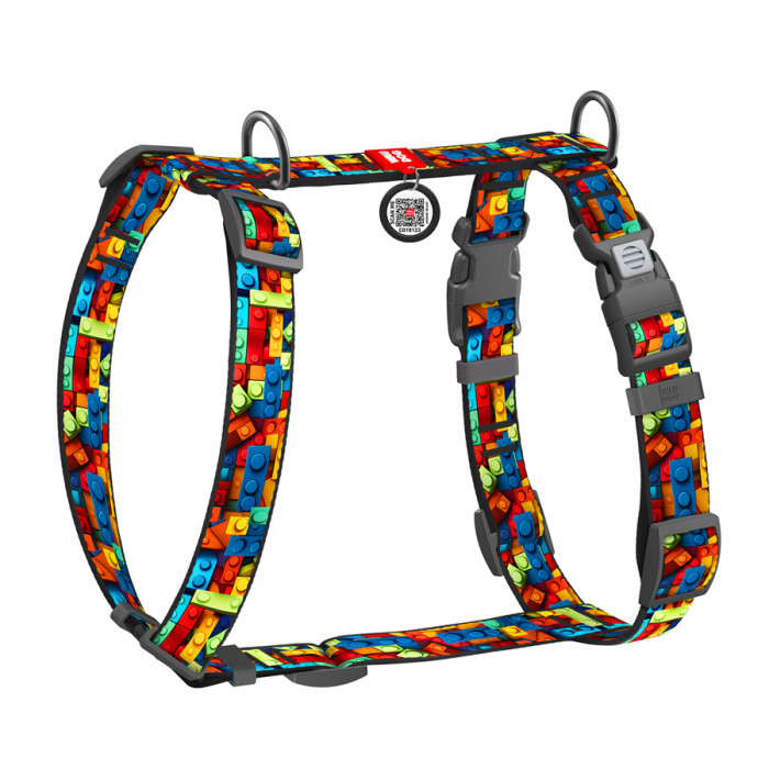 Шлея для собак анатомічна H-подібна WAUDOG Nylon з QR-паспортом, малюнок "Блоки", пластиковий фастекс, L, Ш 25 мм, A 51-85 см, B 61-85 см