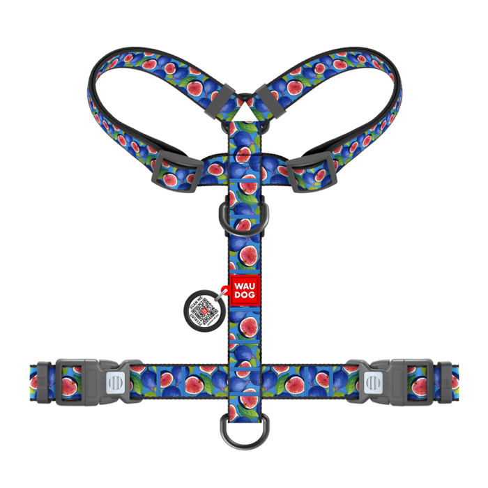 Шлея для собак анатомічна H-подібна WAUDOG Nylon з QR-паспортом, малюнок "Інжир", пластиковий фастекс, L, Ш 25 мм, A 51-85 см, B 61-85 см