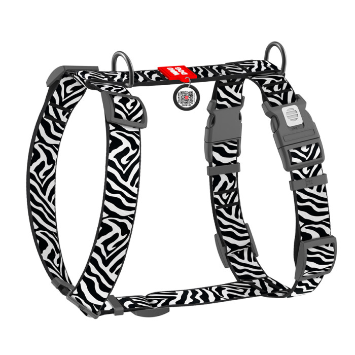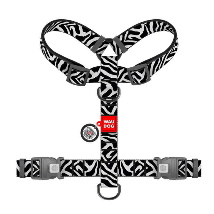 Амуніція WAUDOG Nylon з анімалістичним принтом поєднує яскравий дизайн із високою функціональністю. Шлея WAUDOG Nylon завдяки особливій Н-подібній формі ідеально сідає на собаку і забезпечує йому максимальний комфорт. Вона розроблена таким чином, що при натягу повідця не відбувається стискання дихальних шляхів тварини. Має 2 півкільця для повідця (верхнє та нижнє), що дозволяє більш рівномірно розподілити фізичне навантаження на опорно-руховий апарат собаки. Переваги: • Яскраві анімалістичні дизайни • QR-адресник в комплекті • Міцний та зносостійкий нейлон