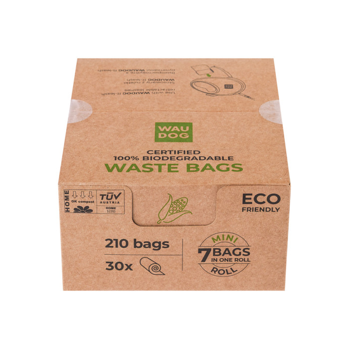 Біорозкладні гігієнічні пакети зроблять прогулянки з улюбленцем ще комфортнішими! Вони призначені для прибирання за тваринами. Виготовлені з кукурудзяного крохмалю та абсолютно не містять поліетилен, завдяки чому є 100% біорозкладними. Рулон гігієнічних пакетів WAUDOG можна використовувати з рулетками WAUDOG R-leash, які мають контейнер для гігієнічних пакетів. Переваги: • Міцні та водонепроникні — витримують 1,5 кг або 1 л • Вигідне фасування: в упаковці 30 міні рулонів по 7 пакетів у кожному • Зручний розмір пакета: 20х25 см • 100% біорозкладні