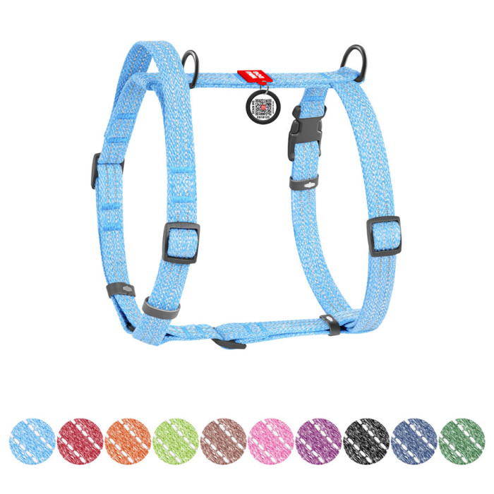 Шлея виготовлена з відновленої бавовни, що робить її екологічно чистою та зносостійкою. Гіпоалергенний матеріал забезпечує комфорт для пухнастого улюбленця, а вплетена світловідбивна нитка гарантує безпеку під час прогулянок у темний час доби. Шлея розроблена таким чином, що при натягу повідця не відбувається стискання дихальних шляхів тварини. Має 2 півкільця для повідця (верхнє та нижнє), що дозволяє більш рівномірно розподілити фізичне навантаження на опорно-руховий апарат собаки.Переваги:•Анатомічна конструкція;• Екологічний та гіпоалергенний матеріал;• Довічна гарантія на фурнітуру;• Наявність адресника з QR-паспортом• Світловідбивні елементи