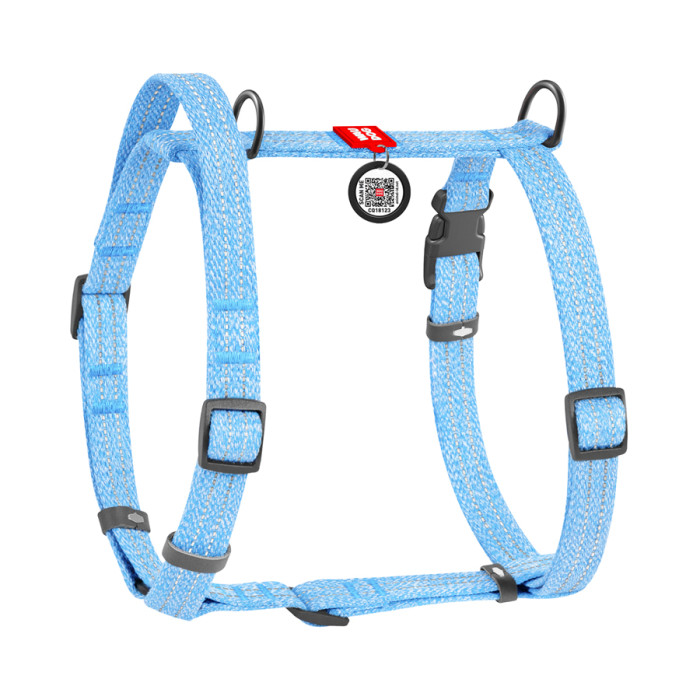 Шлея виготовлена з відновленої бавовни, що робить її екологічно чистою та зносостійкою. Гіпоалергенний матеріал забезпечує комфорт для пухнастого улюбленця, а вплетена світловідбивна нитка гарантує безпеку під час прогулянок у темний час доби. Шлея розроблена таким чином, що при натягу повідця не відбувається стискання дихальних шляхів тварини. Має 2 півкільця для повідця (верхнє та нижнє), що дозволяє більш рівномірно розподілити фізичне навантаження на опорно-руховий апарат собаки.Переваги:•Анатомічна конструкція;• Екологічний та гіпоалергенний матеріал;• Довічна гарантія на фурнітуру;• Наявність адресника з QR-паспортом• Світловідбивні елементи