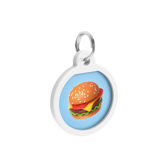 Адресник для собак і котів металевий WAUDOG Smart ID з QR паспортом, малюнок "Гамбургер", коло, Д 25 мм