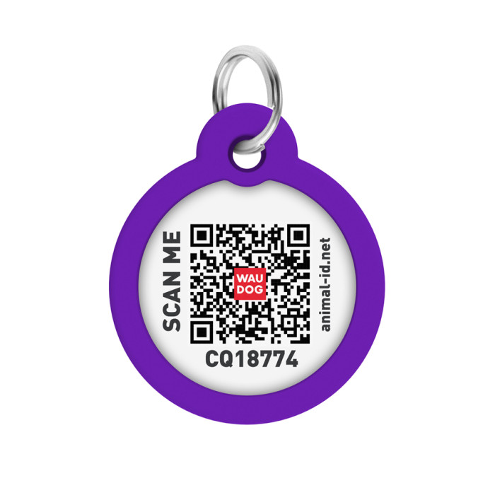 Адресник для собак і котів металевий WAUDOG Smart ID з QR паспортом, малюнок "Градієнт фіолетовий", коло, Д 30 мм