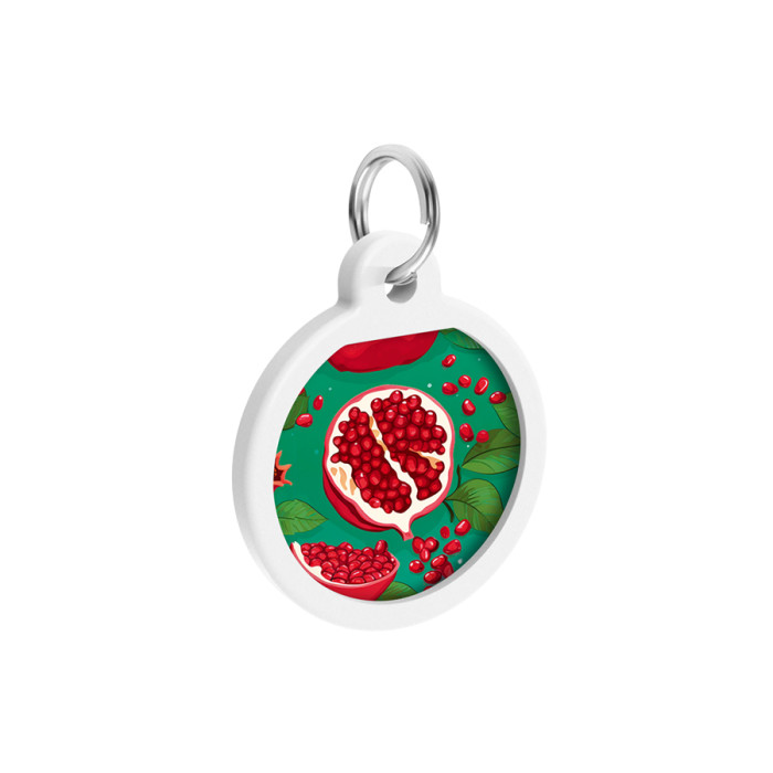 Адресник для собак і котів металевий WAUDOG Smart ID з QR паспортом, малюнок "Гранати", коло, Д 25 мм