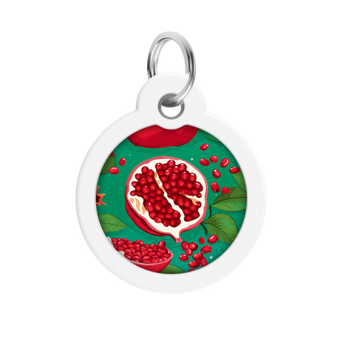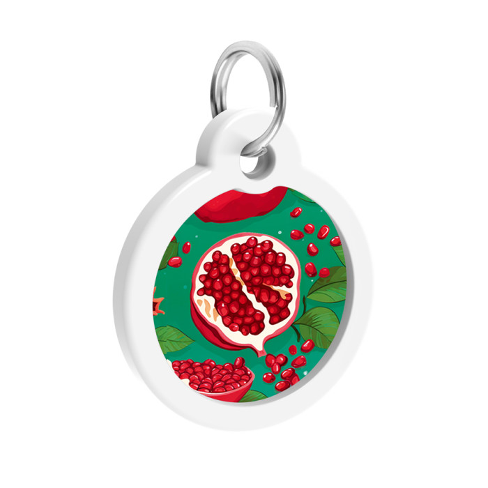 Адресник для собак і котів металевий WAUDOG Smart ID з QR паспортом, малюнок "Гранати", коло, Д 30 мм