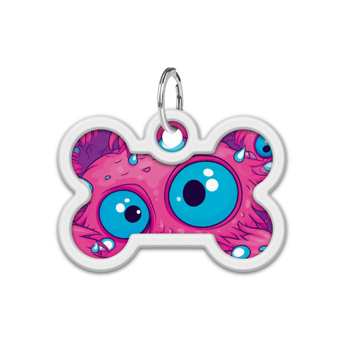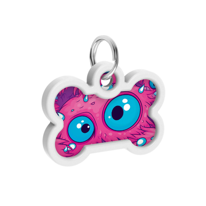 Адресник для собак і котів металевий WAUDOG Smart ID з QR паспортом, малюнок "Око монстра", кістка, Д 40 мм, Ш 28 мм