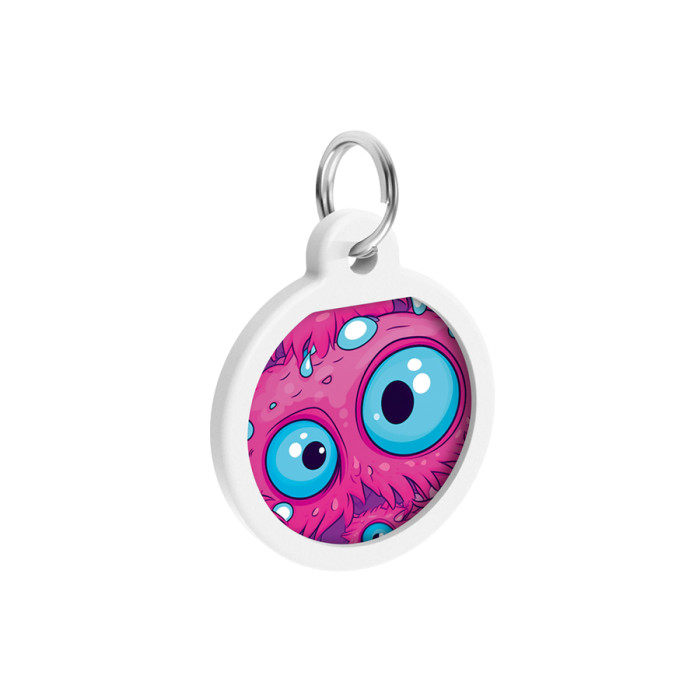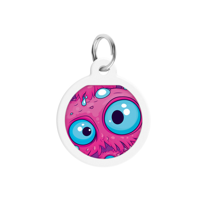 Адресник для собак і котів металевий WAUDOG Smart ID з QR паспортом, малюнок "Око монстра", коло, Д 25 мм