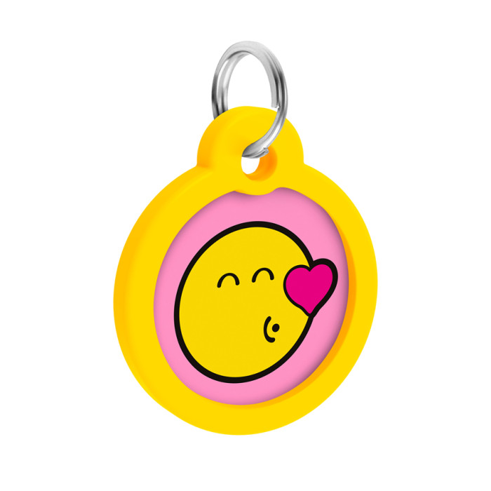 Адресник для собак і котів металевий WAUDOG Smart ID з QR паспортом, малюнок "Смайли на рожевому", коло, Д 30 мм