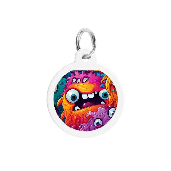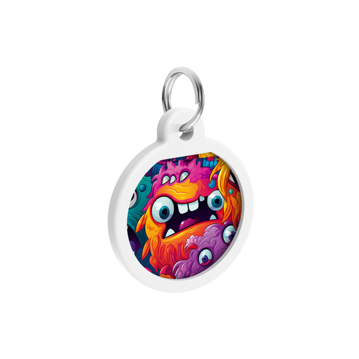 Адресник для собак і котів металевий WAUDOG Smart ID з QR паспортом, малюнок "Зубасті монстри", коло, Д 25 мм