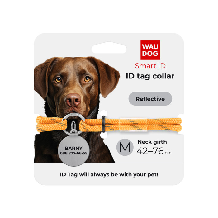 Шнурок з паракорду для адресника WAUDOG Smart ID, світловідбивний, розмір М, діаметр 4 мм, довжина 42-76 см, золотий