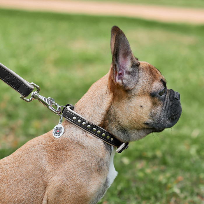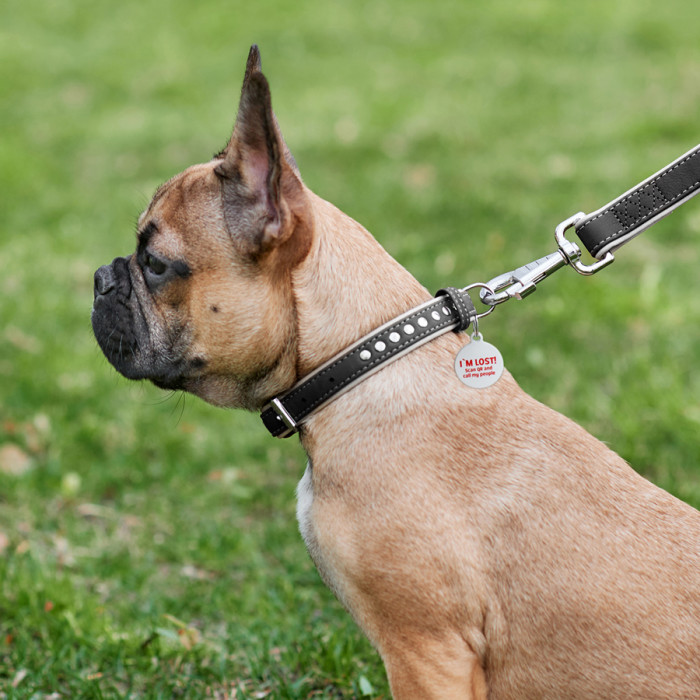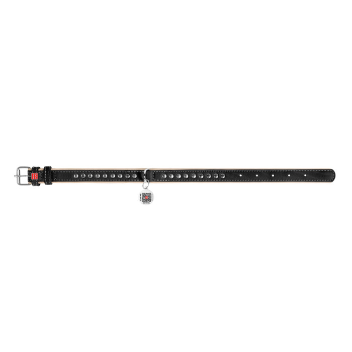 Нашийник для собак шкіряний WAUDOG Soft з QR паспортом, металічні прикраси, Ш 15 мм, Дов 27-36 см чорний