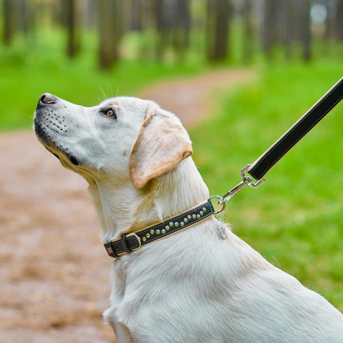 Головне завдання нашийника – бути міцним і надійним. Коли ця мета досягнута, можна подумати про комфорт. У виробах серії WAUDOG Soft ця задача вирішена. При виготовленні застосовується найм’якіша шкіра. Проведіть рукою по поверхні нашийника і відчуйте різницю! На шкірі нашийників збережений її природний малюнок. З часом нашийники стають тільки краще, набуваючи додатковий природний блиск і м'якість.Довжина нашийника підбирається відповідно до обхвату шиї хвостатого друга, який визначають вимірювальною стрічкою. При цьому правильно додавати до отриманого результату від 2 см (для середніх і дрібних порід) до 5 см (для великих), щоб нашийник не натирав і не здавлював шию тварини.