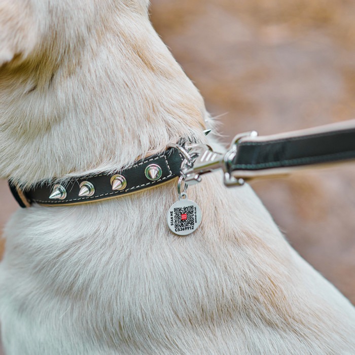 Нашийник для собак шкіряний WAUDOG Soft з QR паспортом, з шипами, Ш 35 мм, Дов 57-71 см чорний