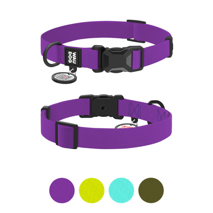 Нашийник для собак водостійкий WAUDOG Magnet c QR паспортом, магнітна пряжка-фастекс, L, Ш 25 мм, Дов 34-49 см, фіолетовий