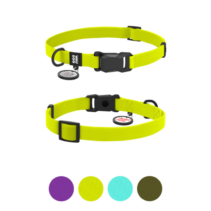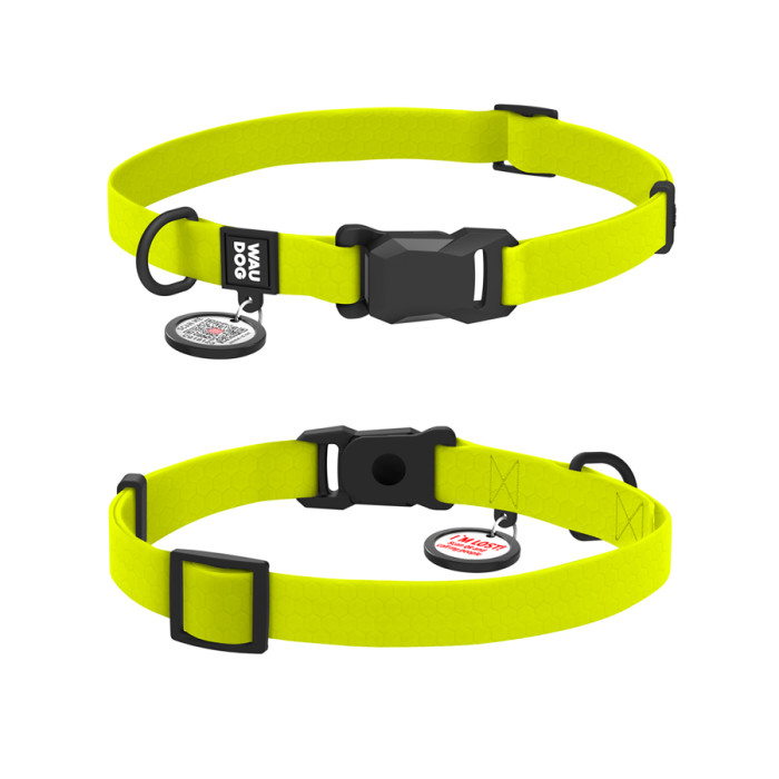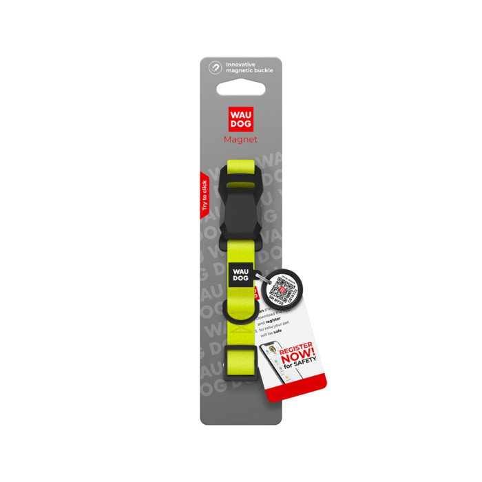 Нашийник для собак водостійкий WAUDOG Magnet c QR паспортом, магнітна пряжка-фастекс, S, Ш 15 мм, Дов 26-35 см, лимонний