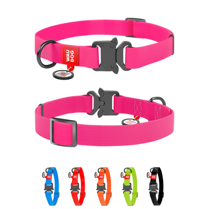 Нашийники WAUDOG Waterproof виготовлені з інноваційного комбінованого матеріалу, розробленого Компанією COLLAR. Матеріал складається з внутрішнього армованого шару, що несе на собі основне навантаження та зовнішньої прорезиненої оболонки з унікальною, приємною на дотик фактурою, яка запобігає ковзанню. Незважаючи на безпрецедентну міцність, матеріал дуже легкий, що дозволяє значно знизити вагу амуніції та зробити її зручнішою у використанні. Довжина Нашийника підбирається відповідно до обхвату шиї хвостатого друга, який визначають мірною стрічкою. При цьому варто додавати до отриманого результату від 2 см (для середніх та дрібних порід) до 5 см (для великих), щоби Нашийник не натирав та не стискав шию тварини.