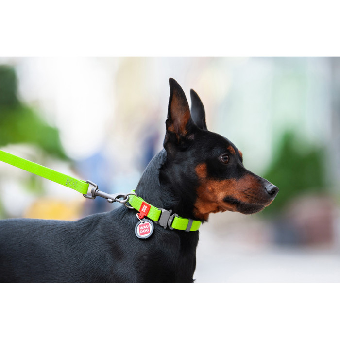 Нашийники WAUDOG Waterproof виготовлені з інноваційного комбінованого матеріалу, розробленого Компанією COLLAR. Матеріал складається з внутрішнього армованого шару, що несе на собі основне навантаження та зовнішньої прорезиненої оболонки з унікальною, приємною на дотик фактурою, яка запобігає ковзанню. Незважаючи на безпрецедентну міцність, матеріал дуже легкий, що дозволяє значно знизити вагу амуніції та зробити її зручнішою у використанні. Довжина Нашийника підбирається відповідно до обхвату шиї хвостатого друга, який визначають мірною стрічкою. При цьому варто додавати до отриманого результату від 2 см (для середніх та дрібних порід) до 5 см (для великих), щоби Нашийник не натирав та не стискав шию тварини.