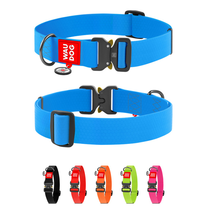 Новий Нашийник в серії Waterproof від ТМ WAUDOG розроблено спеціально для великих пород собак. Комбінація нової широкої стрічки (40 мм) з міцною металевою фурнітурою робить конструкцію Нашийника не лише міцною і зносостійкою, але й комфортнішою для собаки.Представлений у 6-ти яскравих кольорах.Довжина Нашийника підбирається виходячи з обхвату шиї хвостатого друга, який визначають мірною стрічкою. При цьому доречно додавати до отриманого результату від 2 см (для середніх і дрібних порід) до 5 см (для великих), щоби Нашийник не натирав і не стискав шию тварини.