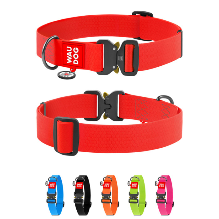 Новий Нашийник в серії Waterproof від ТМ WAUDOG розроблено спеціально для великих пород собак. Комбінація нової широкої стрічки (40 мм) з міцною металевою фурнітурою робить конструкцію Нашийника не лише міцною і зносостійкою, але й комфортнішою для собаки.Представлений у 6-ти яскравих кольорах.Довжина Нашийника підбирається виходячи з обхвату шиї хвостатого друга, який визначають мірною стрічкою. При цьому доречно додавати до отриманого результату від 2 см (для середніх і дрібних порід) до 5 см (для великих), щоби Нашийник не натирав і не стискав шию тварини.