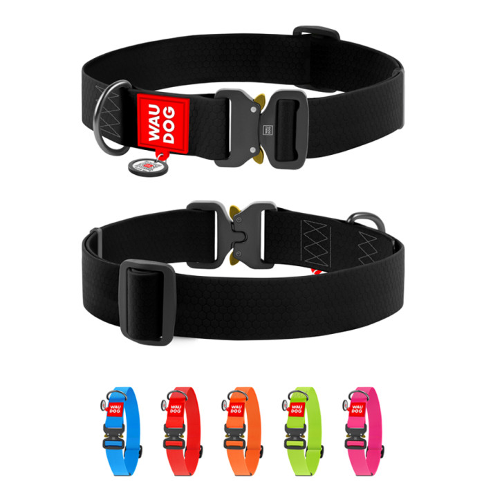 Новий Нашийник в серії Waterproof від ТМ WAUDOG розроблено спеціально для великих пород собак. Комбінація нової широкої стрічки (40 мм) з міцною металевою фурнітурою робить конструкцію Нашийника не лише міцною і зносостійкою, але й комфортнішою для собаки.Представлений у 6-ти яскравих кольорах.Довжина Нашийника підбирається виходячи з обхвату шиї хвостатого друга, який визначають мірною стрічкою. При цьому доречно додавати до отриманого результату від 2 см (для середніх і дрібних порід) до 5 см (для великих), щоби Нашийник не натирав і не стискав шию тварини.