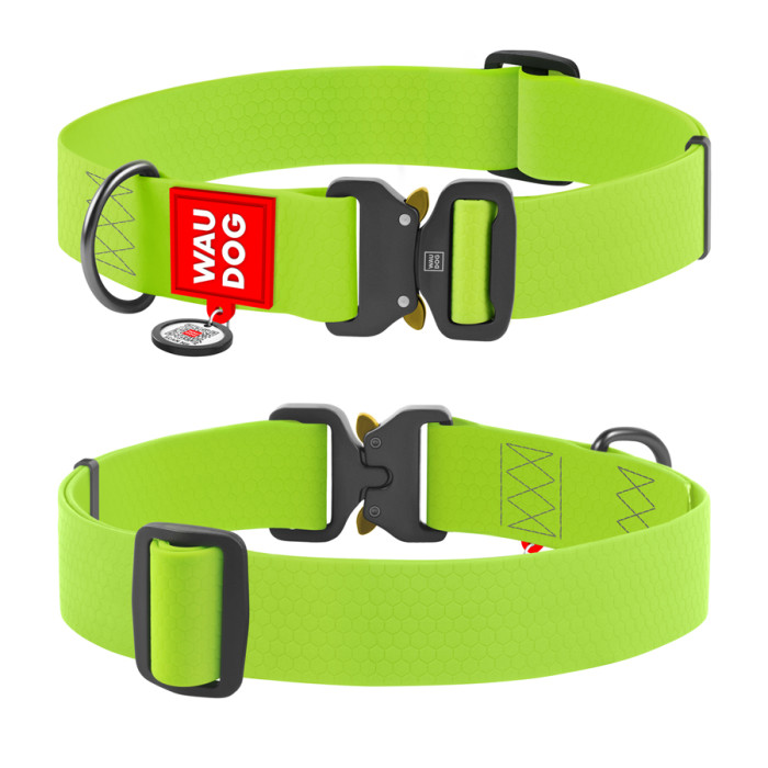 Новий Нашийник в серії Waterproof від ТМ WAUDOG розроблено спеціально для великих пород собак. Комбінація нової широкої стрічки (40 мм) з міцною металевою фурнітурою робить конструкцію Нашийника не лише міцною і зносостійкою, але й комфортнішою для собаки.Представлений у 6-ти яскравих кольорах.Довжина Нашийника підбирається виходячи з обхвату шиї хвостатого друга, який визначають мірною стрічкою. При цьому доречно додавати до отриманого результату від 2 см (для середніх і дрібних порід) до 5 см (для великих), щоби Нашийник не натирав і не стискав шию тварини.