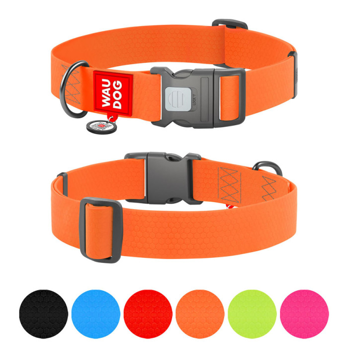 Нашийник для собак водостійкий WAUDOG Waterproof з QR паспортом, пластиковий фастекс, XXL, Ш 40 мм, Дов 46-70 см, помаранчевий