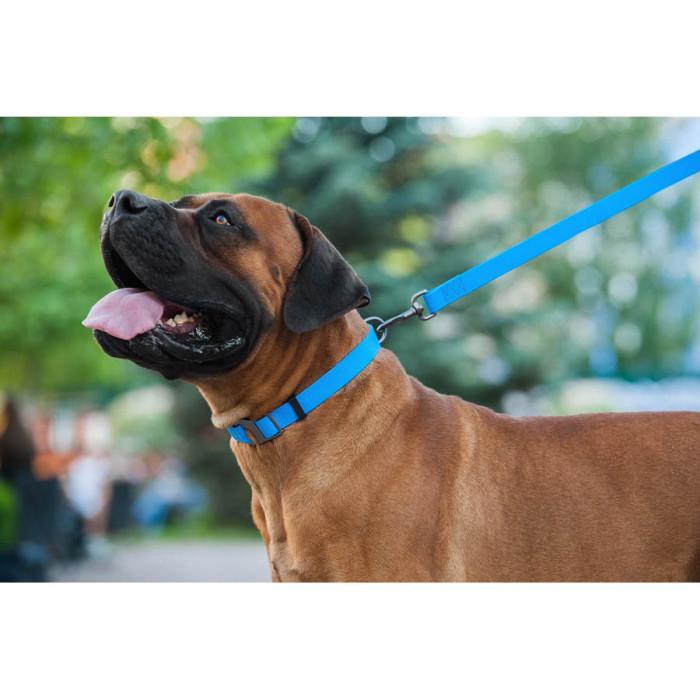 Повідці WAUDOG Waterproof виготовлені з інноваційного комбінованого матеріалу, розробленого Компанією COLLAR. Він складається зі внутрішнього армуючого шару, що несена собі основне навантаження, і зовнішньої прогумованої оболонки з унікальною приємною на дотик фактурою, що перешкоджає ковзанню. Незважаючи на безпрецедентну міцність, матеріал дуже легкий, що дозволяє значно знизити вагу амуніції та зробити її зручнішою у використанні. Повідці серії Waterproof легко миються, не ковзають і не натирають руку під час використання.