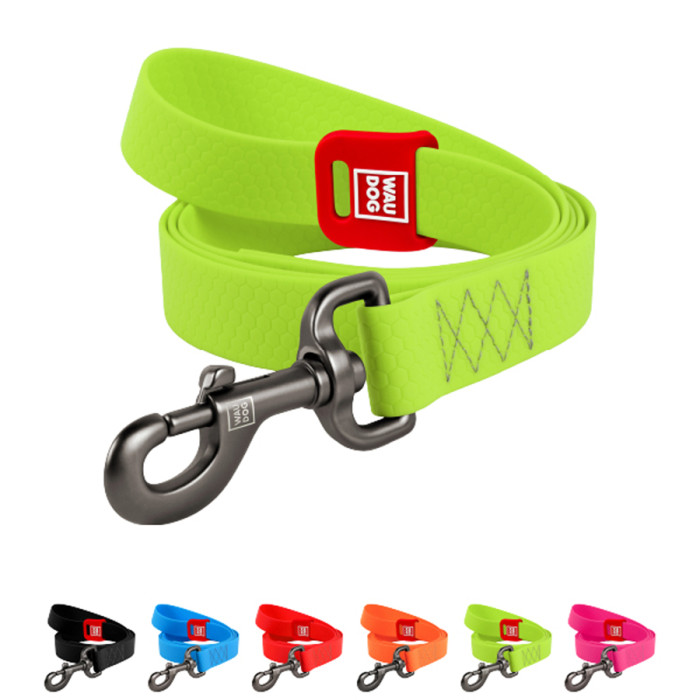 Повідці WAUDOG Waterproof виготовлені з інноваційного комбінованого матеріалу, розробленого Компанією COLLAR. Він складається зі внутрішнього армуючого шару, що несена собі основне навантаження, і зовнішньої прогумованої оболонки з унікальною приємною на дотик фактурою, що перешкоджає ковзанню. Незважаючи на безпрецедентну міцність, матеріал дуже легкий, що дозволяє значно знизити вагу амуніції та зробити її зручнішою у використанні. Повідці серії Waterproof легко миються, не ковзають і не натирають руку під час використання.