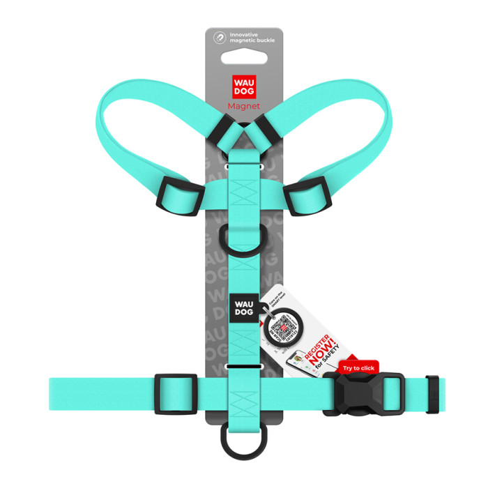 Шлея для собак водостійка анатомічна Н-подібна WAUDOG Magnet з QR-паспортом, магнітна пряжка-фастекс, L, Ш 25 мм, А 50-85 см, В 61-100 см, тіффані