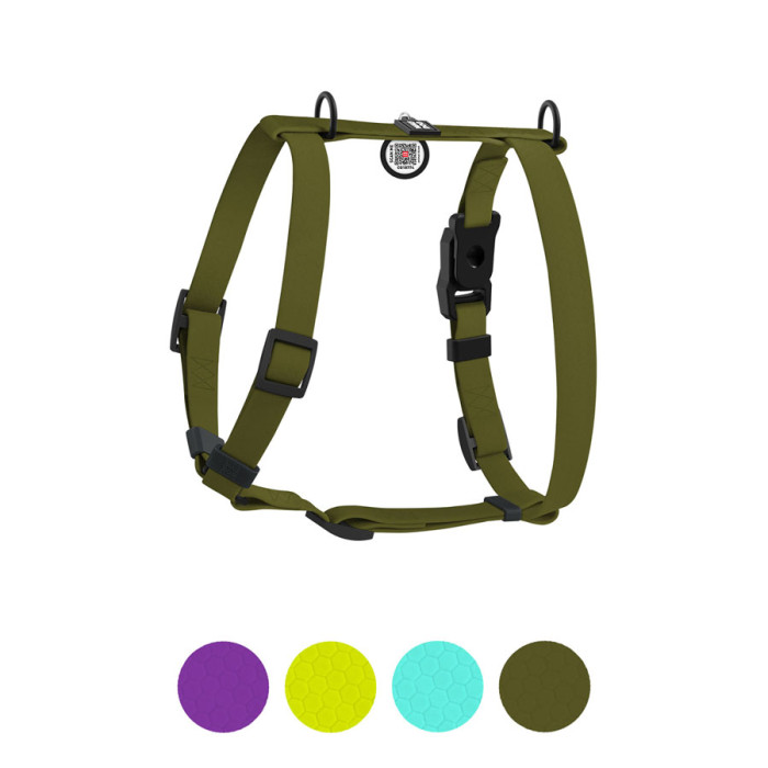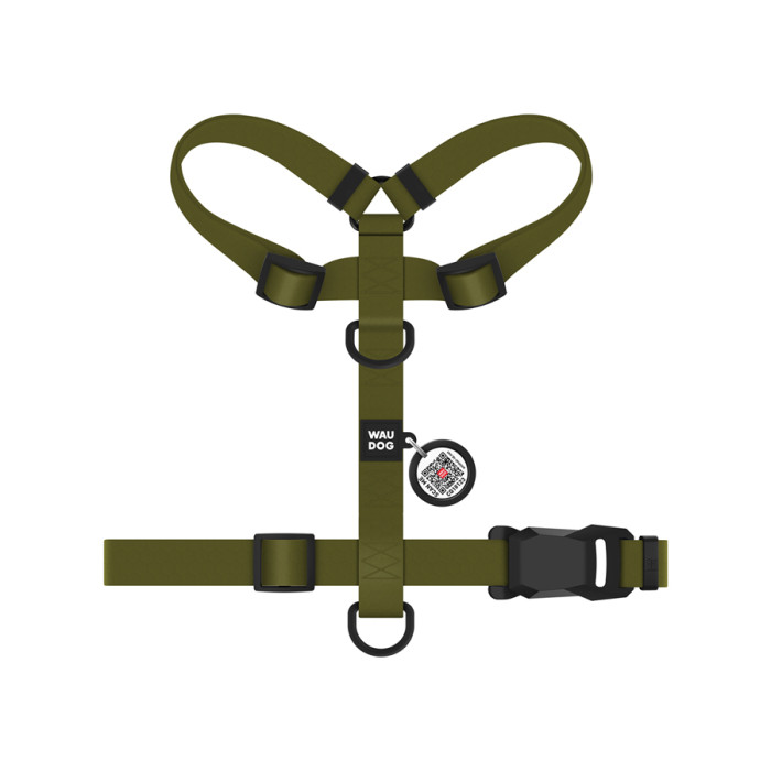 Шлея для собак водостійка анатомічна Н-подібна WAUDOG Magnet з QR-паспортом, магнітна пряжка-фастекс, S, Ш 15 мм, А 28-42 см, В 32-52 см хакі