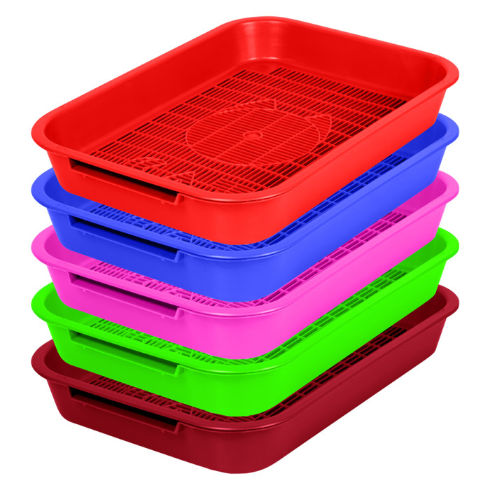 Туалет для котів "CAT" – класичний лоток для котячого туалету з сіткою. Сітка у ньому потрібна для використання сипучих наповнювачів. Особливо зручний при використанні деревних і глинистих наповнювачів. При використанні деревних наповнювачів, що не грудкуються, труха від гранул сиплеться крізь сітку на дно, що надалі полегшує прибирання.Сітка знімна, легко миється і чиститься. Дворівневий лоток значно менше вбирає запахи і зношується від загрібання. А значить, більш довговічний.Розмір лотка оптимально підібраний як по глибині для наповнювача, так і за габаритами для будь-якої квартири та приватного будинку.Даний товар представлений в асортименті. Колір виробу може відрізнятися від зображеного на фото.