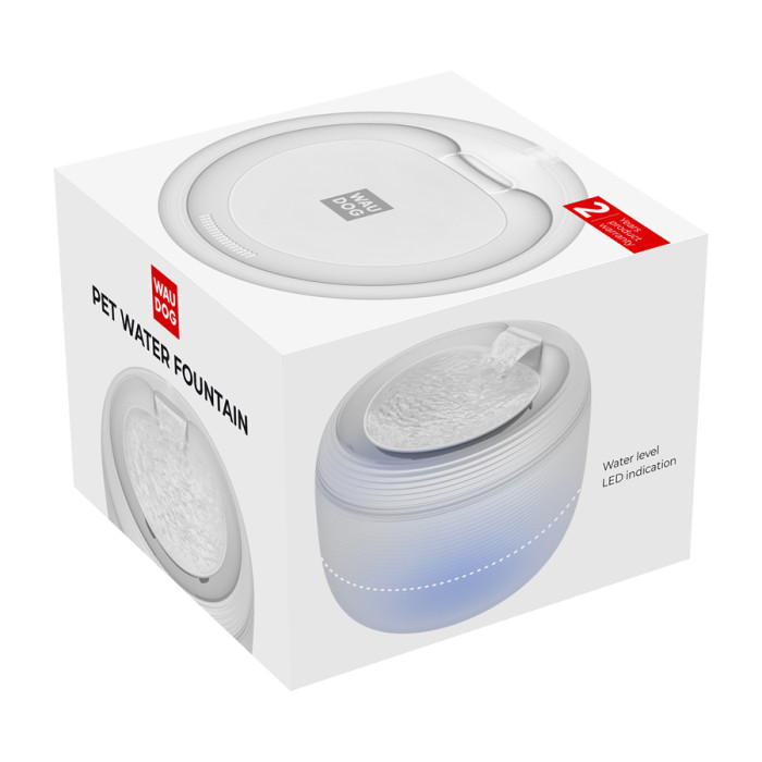 Фонтан-поїлка WAUDOG призначений для цілодобового забезпечення домашніх тварин чистою фільтрованою водою, насиченою киснем. Девайс має лаконічний дизайн, тому чудово впишеться в будь-який інтер'єр. Продукт виконаний з високоякісного харчового пластику, що не має сторонніх запахів, та дозволить більше не турбуватися про якість води в мисці тварини. Проточна вода стимулює інтерес та спонукає улюбленця пити більше, що позитивно впливає на його здоров'я. Резервуар об'ємом 2500 мл та багаторівнева система фільтрації забезпечать пухнастого друга чистою водою на кілька днів, а у разі відключення електроенергії, верхній піддон фонтану вміщує 110 мл води для вихованця. Фільтрувальний елемент входить до комплекту. Рекомендовано змінювати фільтр після місяця безперервного використання. Переваги:· Енергоощадний – всього 1 Вт споживаної потужності· Ергономічний та простий у використанні· 2.5-літровий резервуар для води· Безшумний · Світлодіодна індикація рівня води