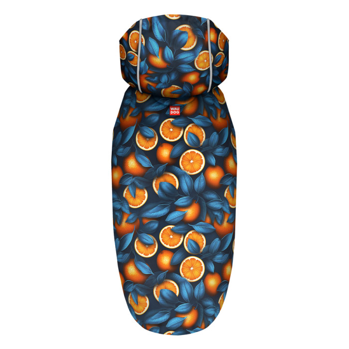 Дощовик-накидка з капюшоном для собак WAUDOG Clothes, малюнок "Апельсини", А 23-26 см, B 30-36 см, С 15-20 см