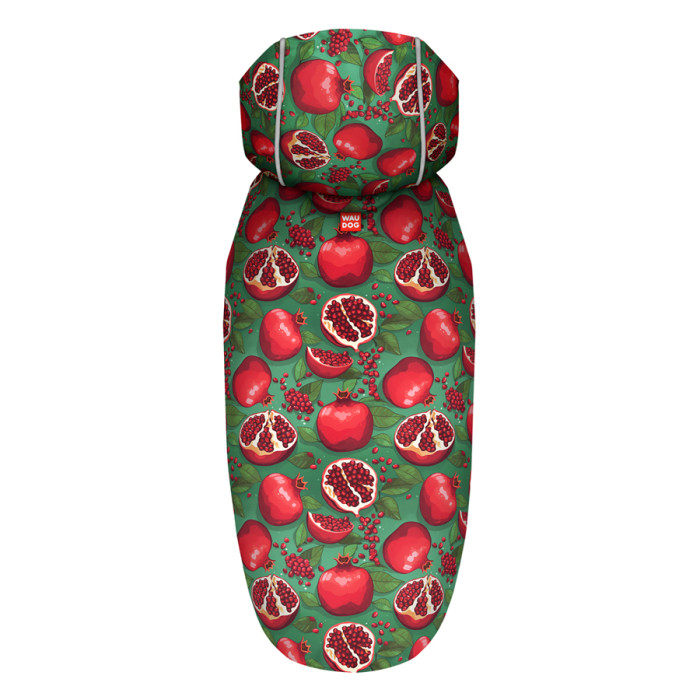Дощовик-накидка з капюшоном для собак WAUDOG Clothes, малюнок "Гранати",L, А 48-52 см, B 60-70 см, С 42-52 см