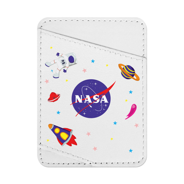Холдер для карток WAUDOG Design з малюнком "NASA", преміум шкіра (ширина 70мм, довжина 95мм) білий