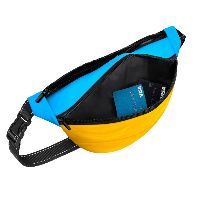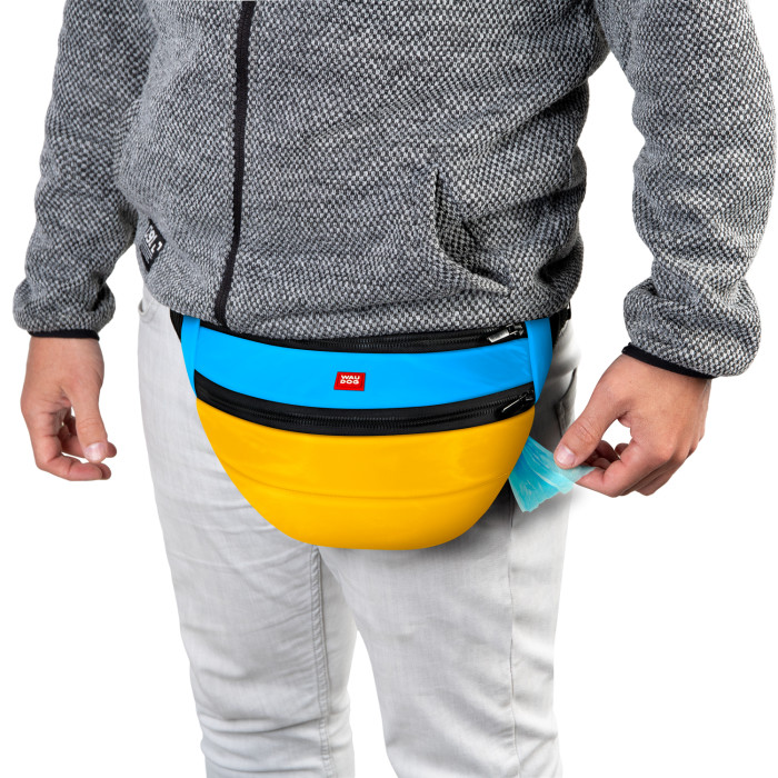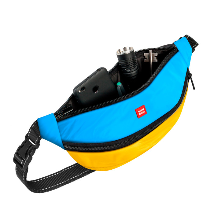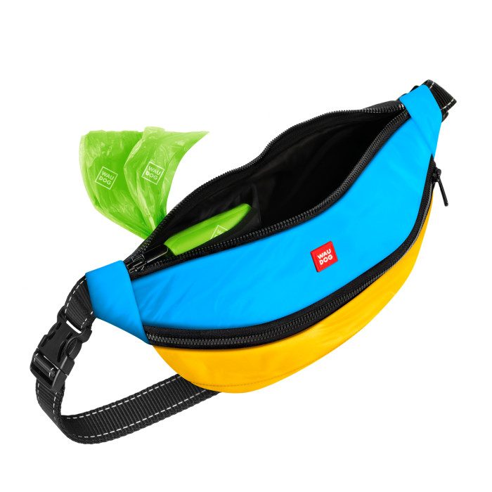 "Colors of freedom" — колекція, яка допоможе показати свою єдність з Україною. Поясна сумка-бананка в патріотичних кольорах здатна стати не лише незамінним помічником при вигулі собаки, але і яскравим акцентом модного образу. Перша кишеня — прекрасно підійде для дрібних речей, які можуть знадобитися під час прогулянки (телефон, ключі, гроші тощо). Друга кишеня — для корму і ласощів. Спеціальне покриття запобігає вбиранню жиру і неприємних запахів, швидко та легко миється вологою губкою. Третя кишеня — внутрішня, із зовнішнім клапаном, для зручного зберігання гігієнічних пакетів. Переваги: · Багатофункціональність · Стильний дизайн · Має три кишені · Стрічка зі світловідбивною ниткою