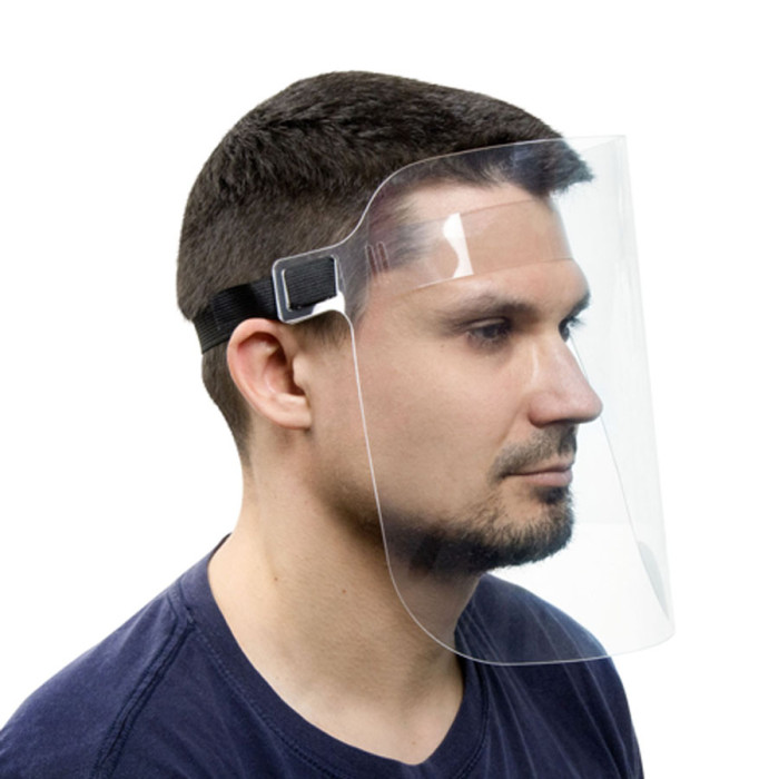 Переваги:- Безпека: захищає всю поверхню обличчя- Комфорт: легка, фіксується м'якою резинкоюБагаторазове використання: підходить для обробки антисептиками