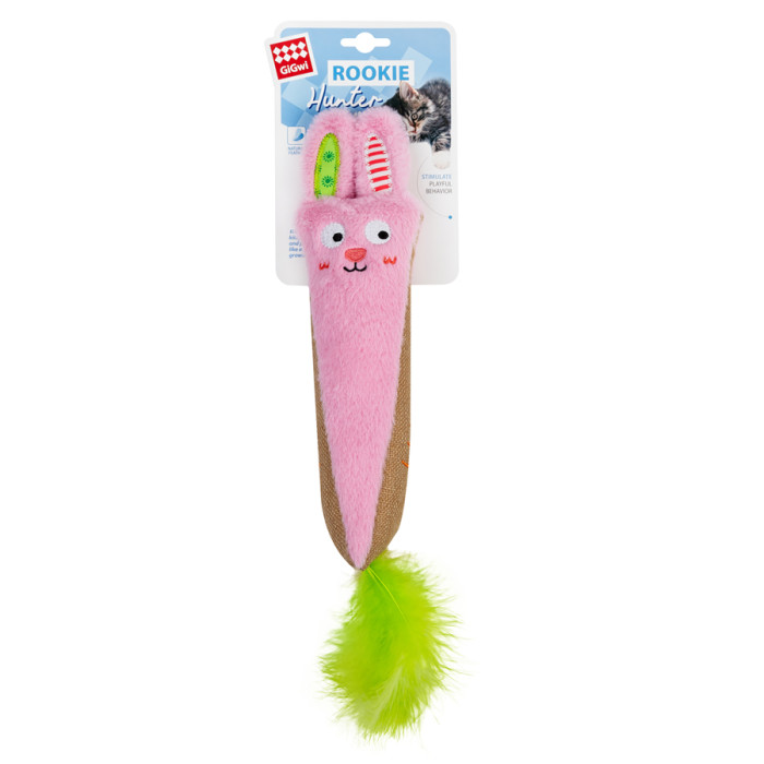 Іграшка для котів Кролик рожевий з шарудінням GiGwi ROOKIE HUNTER, текстиль, папір, 38 см