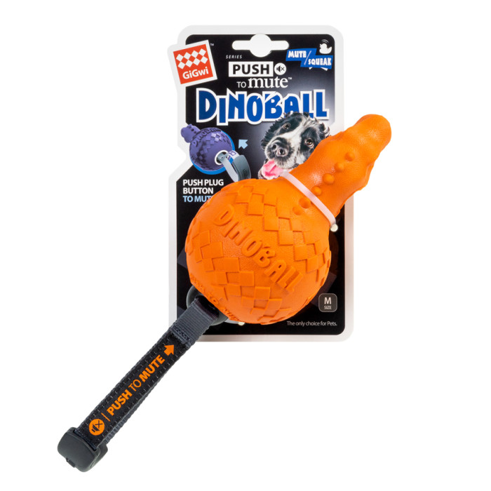 Іграшка для собак "Дінобол Т-рекс" зроблена з високоякісної гуми у вигляді динозавра. Призначена для середніх та великих порід собак. При натисканні видає звук. Можна вмикати та вимикати звук залежно від ситуації. Щоб вимкнути звук – необхідно вставити пальцем всередину іграшки, щоб увімкнути – потягти за ремінець. Іграшка підходить для активної гри.Переваги:• Міцна гума;•Можливість "вимикати" пискавку;•Для активних собак, які полюбляють все гризти та жувати.