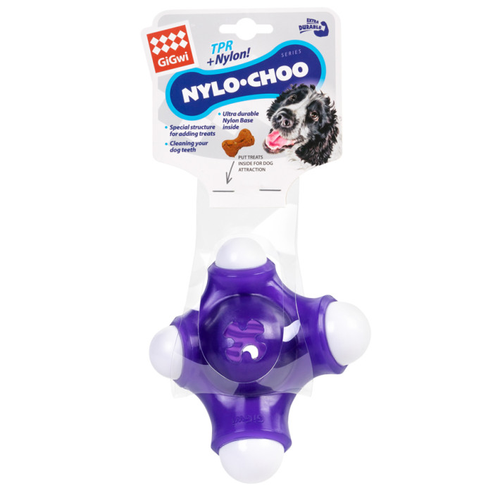 Серія міцних іграшок Nylo-Choo була створена для дуже активних собак "гризунів". Іграшка виготовлена з комбінації надміцних матеріалів, таких як цільнолитий нейлон та TPR гума, які стійкі до зовнішніх силових впливів та будуть стійкі до укусів собак. Спеціальна структура з безпечної та надміцної гуми не ранить зуби собаці та задовольнить жувальні інстинкти. Іграшка підходить для активних ігор.•Виготовлена з нейлона та TPR гуми•Створена для собак, які все гризуть•Задовольняє жувальні інстинкти•Чистить і не травмує зуби•Без запаху