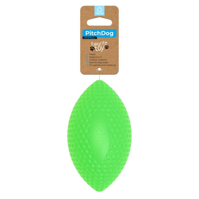PitchDog – універсальна серія іграшок для собак всіх порід і вікових груп, призначена для повсякденних ігор.Зроблений у формі М'ячика для американського футболу, він ідеально підходить для далеких кидків. Спортивний М'ячик PitchDog гарантує господареві та його собаці активне проведення часу під час прогулянок на природі або ігор на воді. Не варто прибирати іграшку і перебуваючи в приміщенні. Вона допоможе стимулювати рухливість собаки в домашніх умовах. Домашній улюбленець з радістю буде ганяти М'ячик по підлозі, отримуючи задоволення від непередбачуваної траєкторії руху.– - Плаває.– Подобається собакам.– Унікальний матеріал.– Не травмує зуби та ясна собаки.– Підходить для ігор і тренувань.