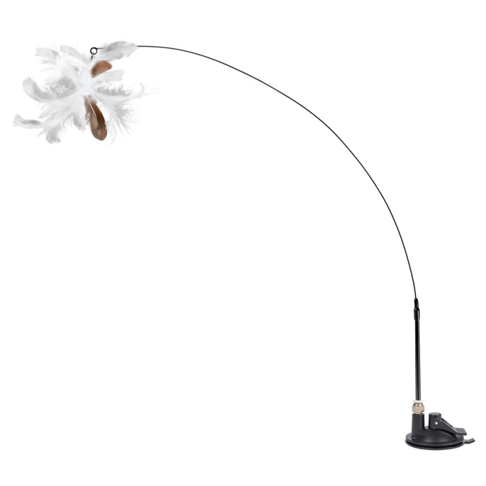 Іграшка для котів WAUCAT Fun Teaser дражнилка на присосці з пером, білий, пластик, силікон, перо, 800 мм