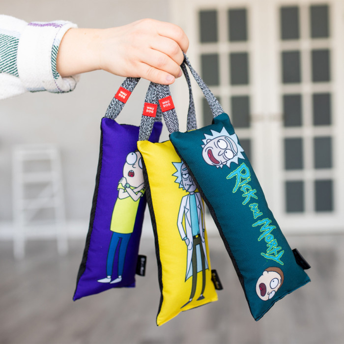 Яскрава іграшка для собак WAUDOG Fun призначена для активних ігор із вихованцем.Усередині знаходиться пищалка, звук якої пробуджує інтерес чотирилапого.Ручка з відновленої бавовни не ковзає в руці та допомагає господареві здійснювати кидки під час занять апортування.Переваги:•Яскравий дизайн з героями серіалу “Рік та Морті”•Зношостійка тканина легко чиститься і складно прокушується.•Наповнювач - гіпоалергенний штучний лебедяний пух, в якому не заводяться кліщі та інші паразити