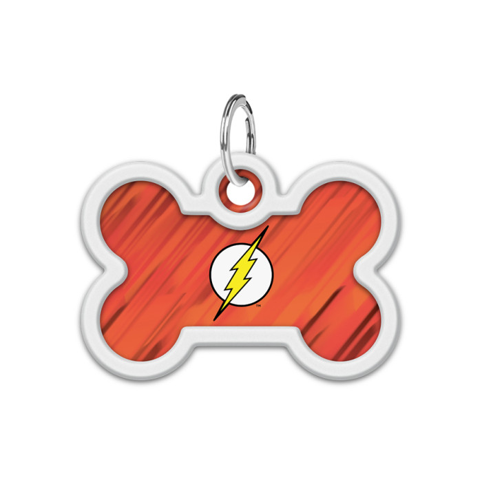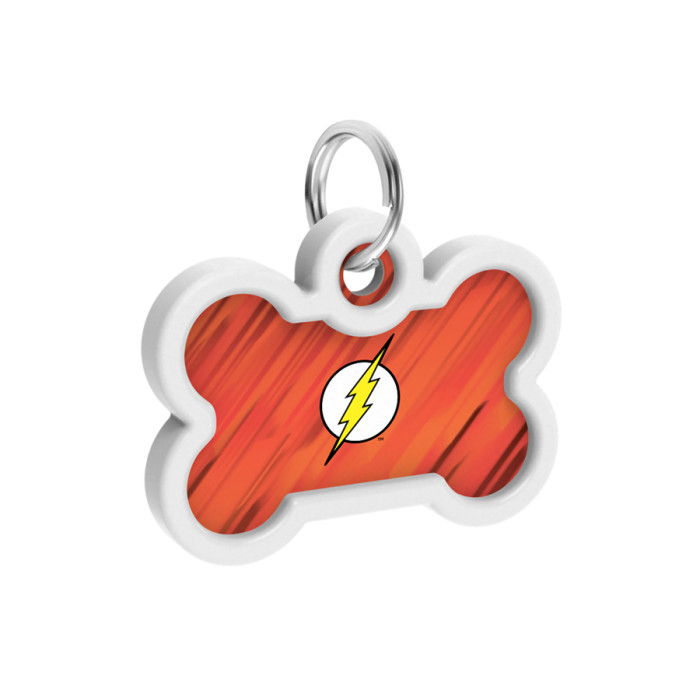 Адресник для собак і котів металевий WAUDOG Smart ID з QR паспортом, малюнок "Флеш лого", кістка, Д 40 мм, Ш 28 мм