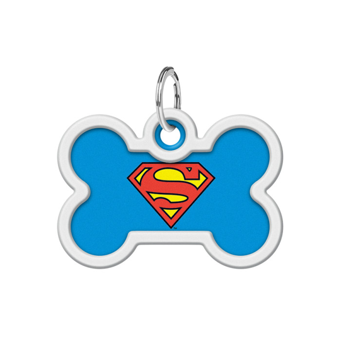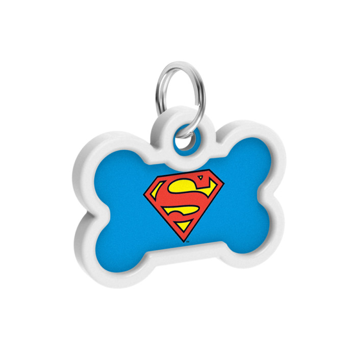Адресник для собак і котів металевий WAUDOG Smart ID з QR паспортом, малюнок "Супермен-герой", кістка, Д 40 мм, Ш 28 мм
