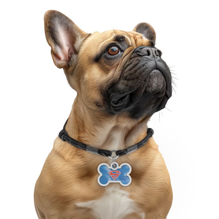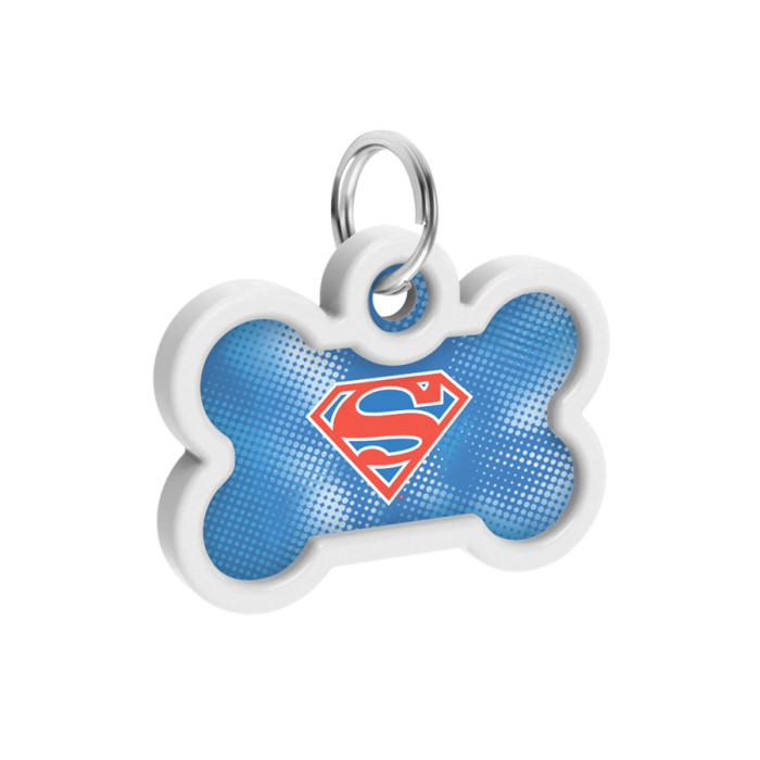 Адресник для собак і котів металевий WAUDOG Smart ID з QR паспортом, малюнок "Супермен ретро", кістка, Д 40 мм, Ш 28 мм