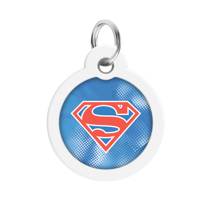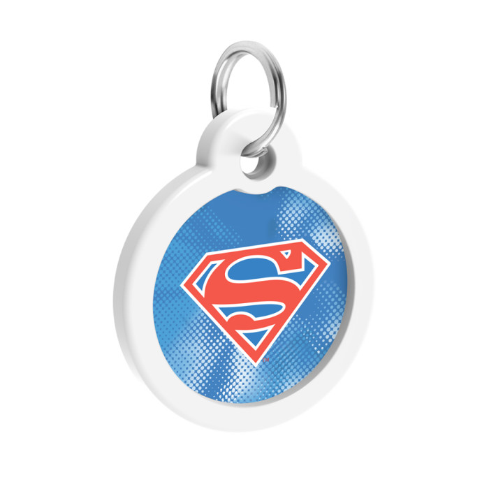 Адресник для собак і котів металевий WAUDOG Smart ID з QR паспортом, малюнок "Супермен ретро", коло, Д 30 мм