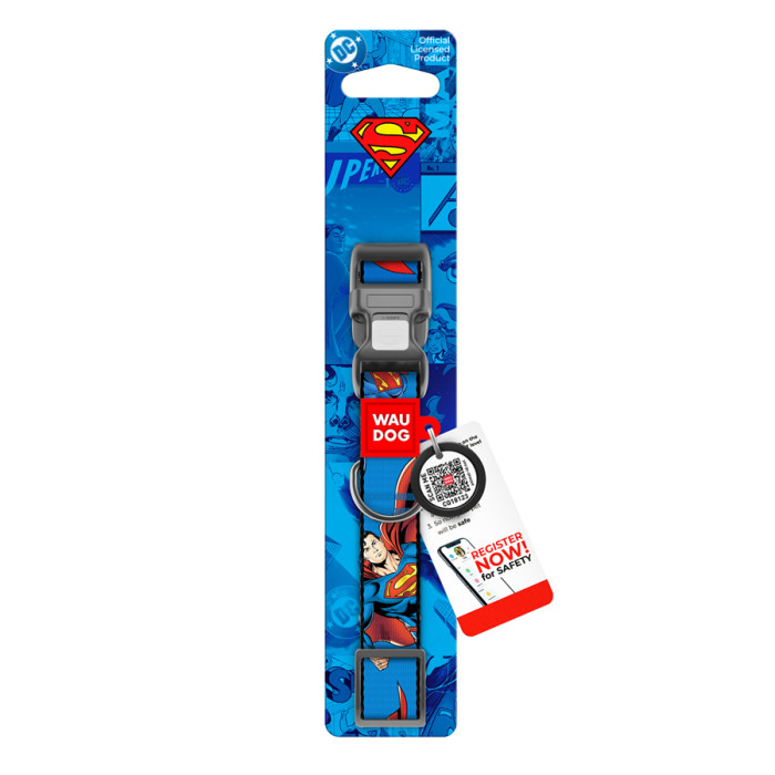 Нашийник для собак нейлоновий WAUDOG Nylon з QR паспортом, малюнок "Сила Супермена", пластиковий фастекс, M, Ш 20 мм, Дл 28-40 см